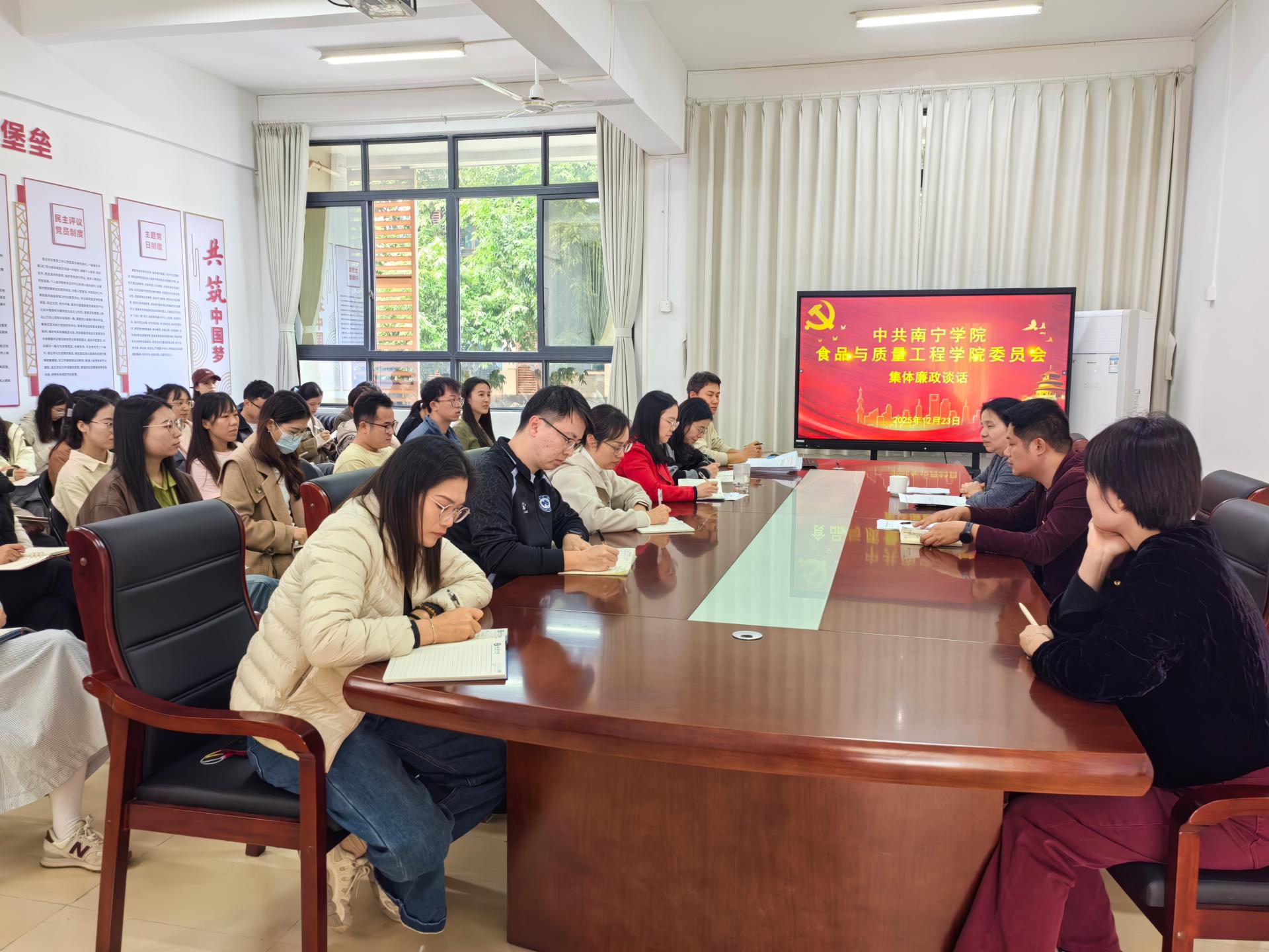 会上,学院党委书记庞湘萍同志围绕中央八项规定精神、考风考纪、教学负面清单、教学事故认定等内容,以及党组织六大纪律,结合学院实际情况展开谈话。并代表学院党委通报绩效分配原则,并以部分案例开展警示教育,引导全院教职工认真贯彻落实“立德树人”根本任务和中央八项规定精神,遵守师德师风纪律,维护教师队伍良好形象。(食品与质量工程学院供稿 图/颜金柳 文/黄国俊)(一审一校:黄国俊 二审二校:陈园园 三审三校:潘炳捷)