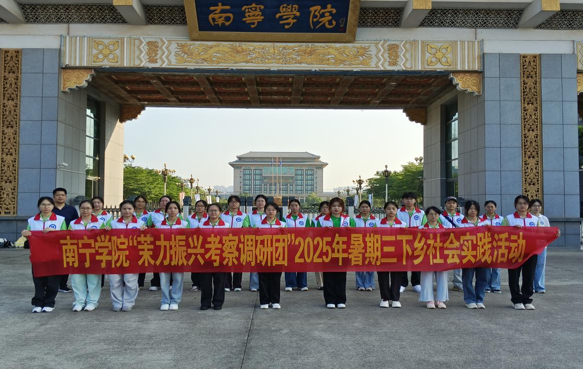2025年7月5日-7月9日,南宁学院食品与质量工程学院“茉力振兴”考察调研团在学院党总支副书记潘炳捷、辅导员颜金柳老师的带领下,于南宁学院南门举行出征仪式后,奔赴南宁市横州市开展暑期“三下乡”社会实践活动。此次活动以茉莉花非遗产业为切入点,将“三全育人”理念与“五育并举”教育方针深度融合,让青年学子在实践中厚植家国情怀、锤炼过硬本领。