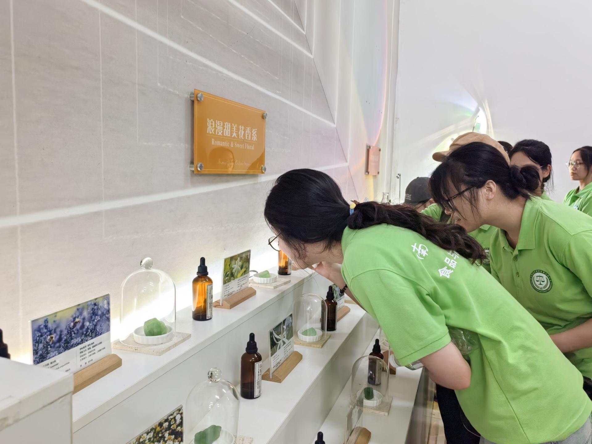 考察调研团的行程处处渗透着劳动教育的印记。在中华茉莉园,成员们跟随花农学习采摘标准——只采含苞待放的花蕾,避免损伤花萼,亲身感受“一花一叶皆辛苦”的劳作不易;在香香花园,成员们调动五感,亲手制作茉莉花产品,沉浸于茉莉花的世界:手作奶茶的芬芳萦绕,香膏的馥郁在掌心凝聚,花串的雅致于腕间绽放,香水的个性在调香中诞生。这段从田间枝头到匠心成品的深度体验之旅,让每个人都在亲手创造中,收获了劳动赋予价值的深刻喜悦与自豪。