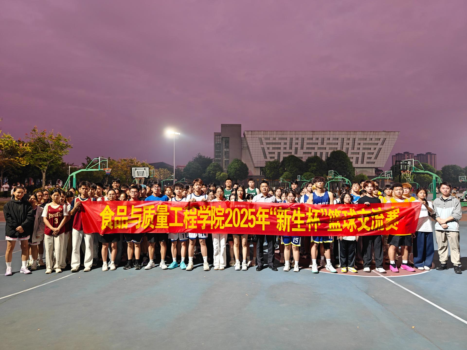 为深入落实学校“健康第一、全面发展”的体育教育理念,强健学生体魄、培养团队协作精神,推动体育育人与校园文化深度融合,食品与质量工程学院于2025年10月29日举行新生杯篮球赛开幕式及首轮比赛,2025级新生班级组成的精英队伍齐聚赛场,以昂扬姿态迎接比拼,用汗水与活力诠释体育精神。