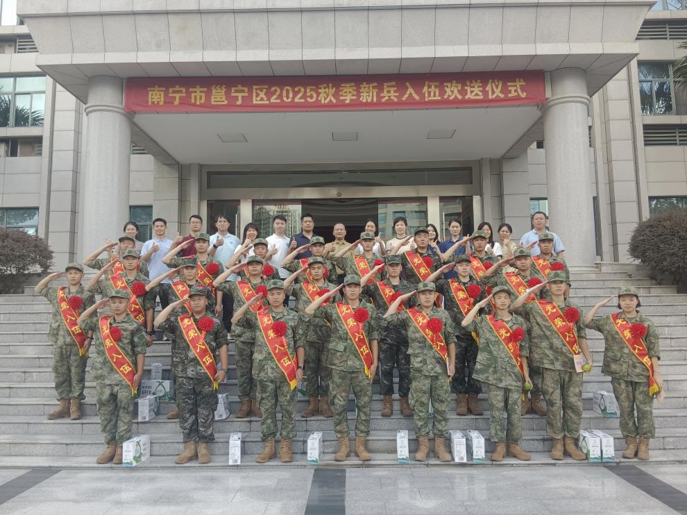 戎装映初心,壮志赴军营。2025年9月15日上午11时,南宁市邕宁区2025年秋季新兵入伍欢送仪式在庄严热烈的氛围中隆重举行。我院党总支副书记潘炳捷、学生科副科长徐鸿宇、学生科辅导员陈园园代表学院亲临现场,为即将开启军旅生涯的我院学子送上殷切期望与美好祝福。