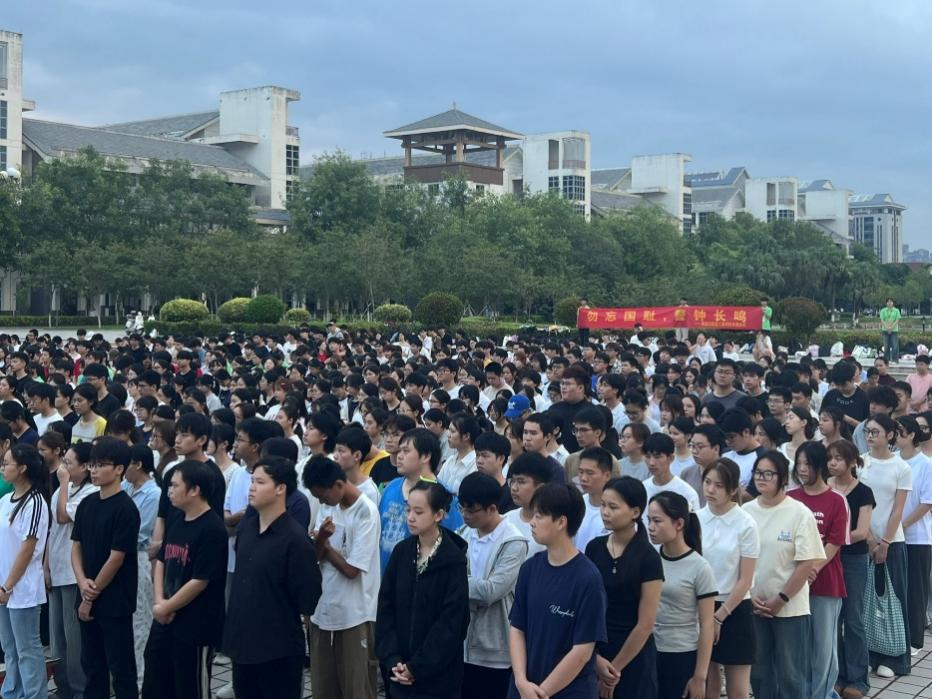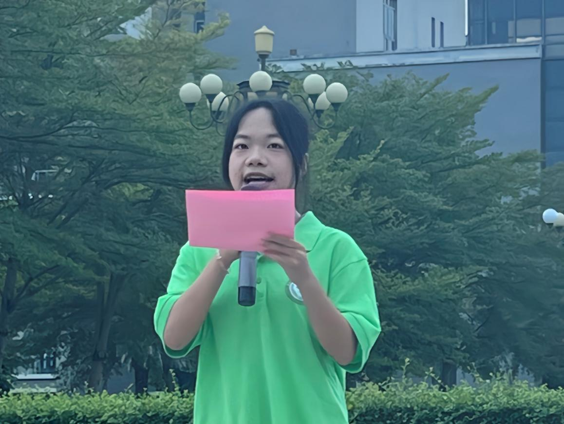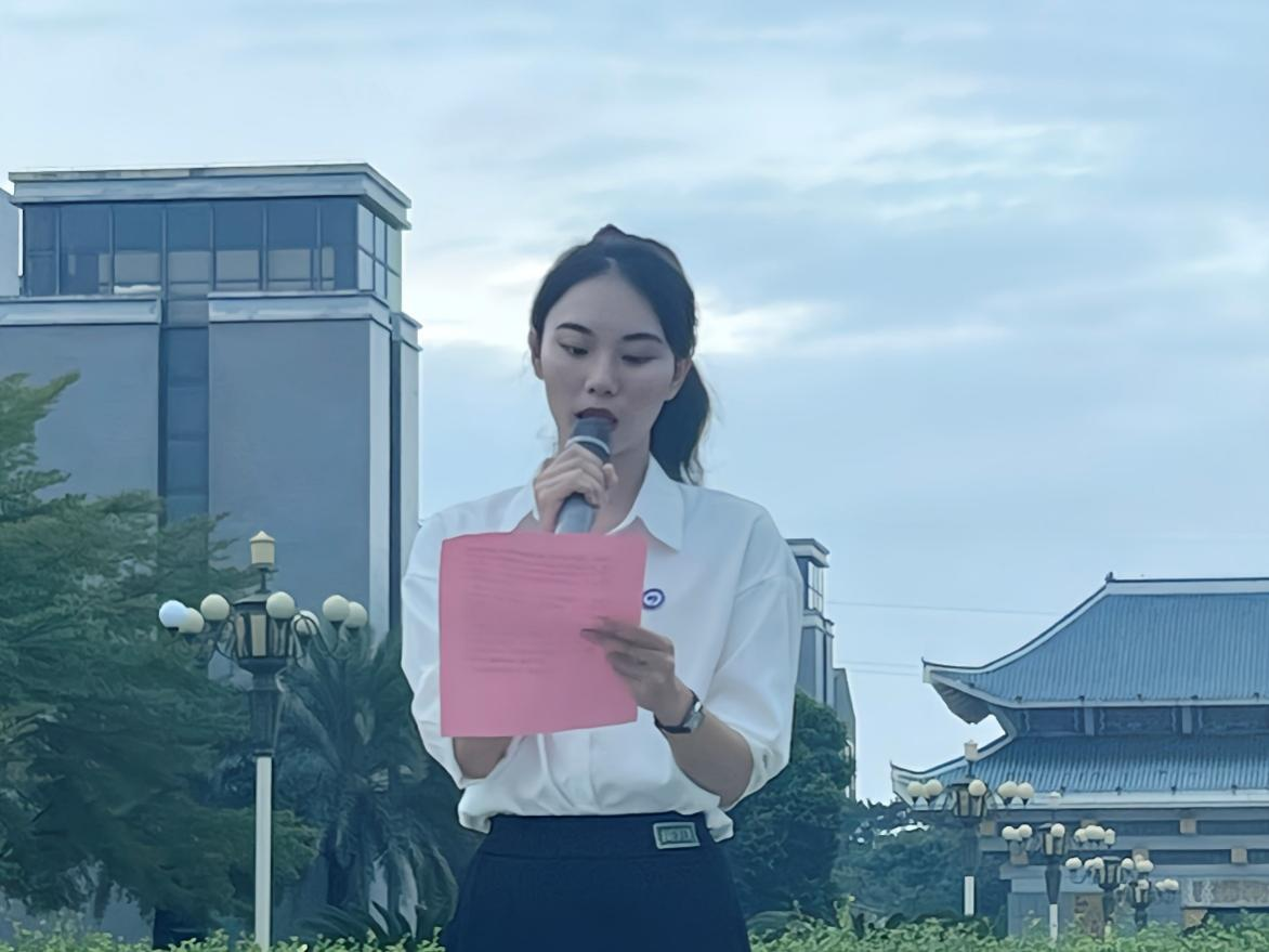 接下来是国旗下讲话环节,师生代表依次进行发言,传递责任与信念。25级质量管理工程2班何紫依同学作为新生代表,分享了入校以来的感受与期待,表达了新生群体积极融入校园、勤奋学习的决心,承诺将以勤奋踏实的态度追赶学长学姐的步伐,尽快适应大学节奏;团学代表学术监察部朱天昌同学则聚焦“历史记忆”,带领全体师生回顾“918”事变的峥嵘岁月,回忆那段刻骨铭心的岁月,警醒大家铭记民族过往、传承爱国精神。