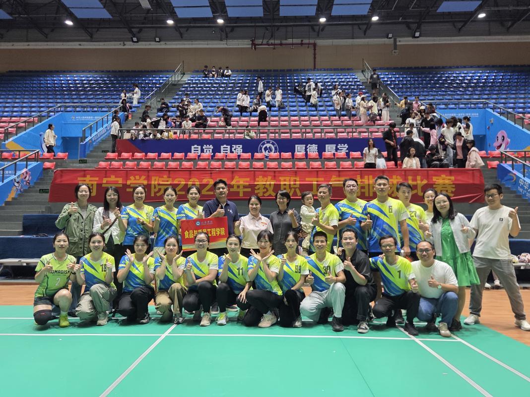 2025年10月31日晚,南宁学院2025年教职工气排球比赛在体育馆圆满落幕。食品与质量工程学院教职工代表队发挥出色,经过多轮激烈角逐,最终女队勇夺桂冠,男队荣获亚军,双双实现了成绩的历史性突破,为学院赢得了荣誉。