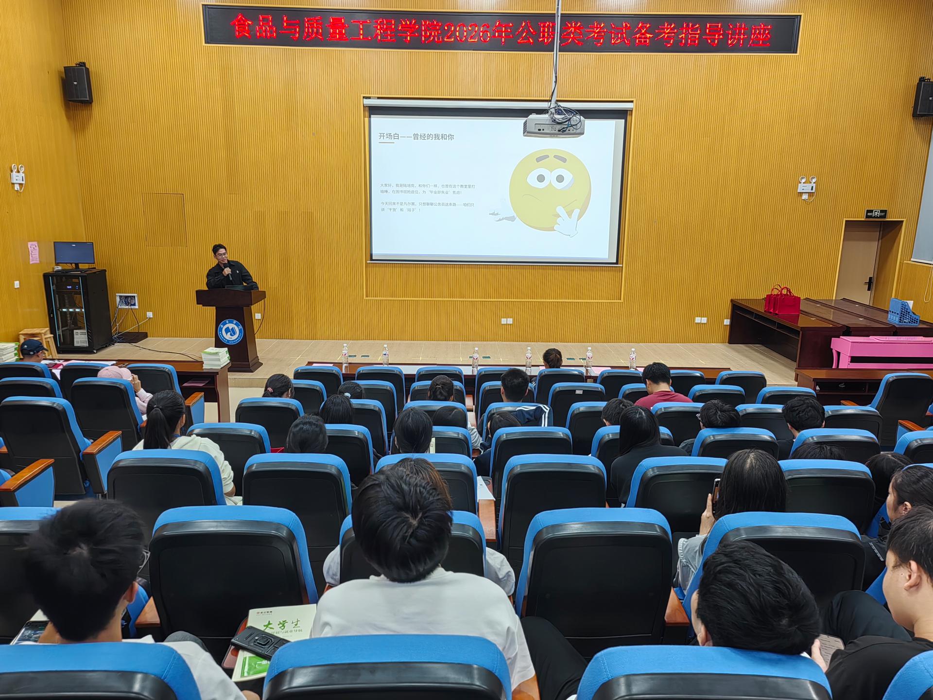此次讲座既为意向考公的学生提供了专业的备考指导,也通过“专业老师加优秀学长”的双视角分享,让学子们对公职类考试有了更清晰的认知。后续学院将持续开展就业指导系列活动,助力学子精准规划职业路径。(食品与质量工程学院供稿 图/文 黎玉云)(一审一校:徐鸿宇 二审二校:陈园园 三审三校:潘炳捷)