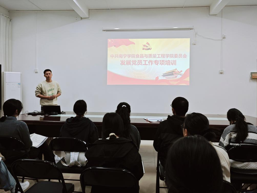 为提升发展对象的政治素养和理论水平,坚定入党理想信念,11月20日至22日,食品与质量工程学院开展发展对象短期集中培训,本次培训共有四个专题,分别由韦云伊、徐鸿宇、黄国俊和谢雨欣四名老师主讲。本次发展对象培训有食品与质量工程学院、教育学院、继续教育学院、审计处、图书馆共16人参加。