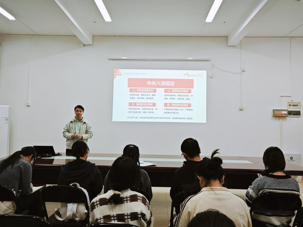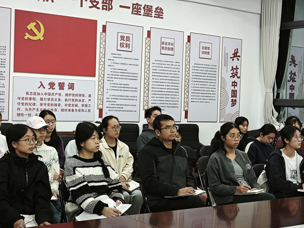 11月21日,第二课由食品与质量工程学院学生第一党支部书记徐鸿宇老师围绕“全面从严治党,抓好党风廉政建设”授课。他结合高校学生党员身边的典型案例,从“什么是全面从严治党”“全面从严治党的历史沿革”反腐的重要措施与成果”以及“学生党员如何践行作风要求”四个方面展开讲解,强调年轻党员要从入学、入党之初就绷紧纪律之弦,扣好廉洁从政的“第一粒扣子”。第三课由食品与质量工程学院专职组织员黄国俊老师开展党务知识及实操培训。详细讲解了发展党员历经的5个阶段骤和25个步骤的具体要求,并结合实操案例,对发展党员的严肃性和材料的规范性进行解释。