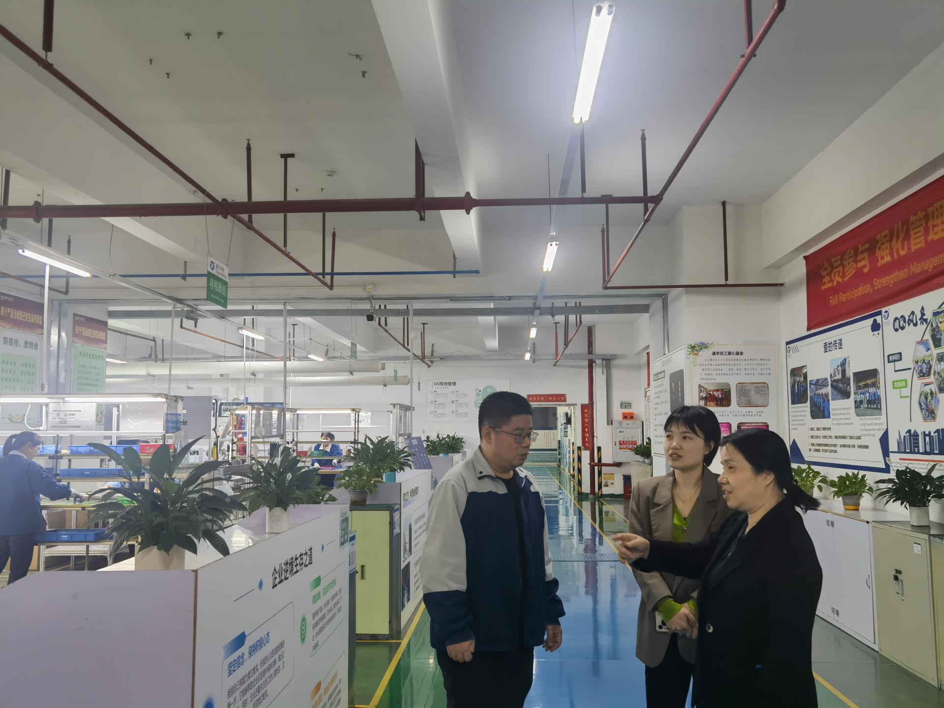 图2 调研团队参观中山市通宇通信技术有限公司生产线