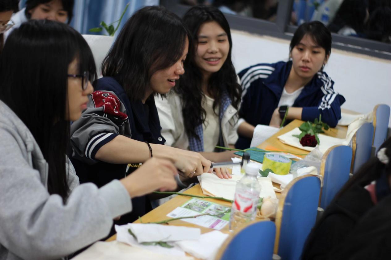 活动伊始,心灵驿站指导老师韩晓涵为活动致辞。她指出:“美育是‘五育’中滋养心灵、激发创造的重要一环。心灵驿站希望通过这类手作活动,不仅为大家提供一个‘慢下来’的契机,在专注创作中舒缓焦虑、放空思绪;更希望同学们能在感知美、创造美的过程中,实现情绪的积极表达与自我悦纳,这正是心理健康教育与美育融合的生动体现。”随后,主持人陈嘉静详细介绍了各环节流程,从蕴含传统智慧的植物拓染,到自由抒发的串珠DIY,再到充满童趣的扭扭棒创作,鼓励同学们尽情释放想象力,在动手实践中收获快乐,体验艺术创作带来的心灵滋养。
