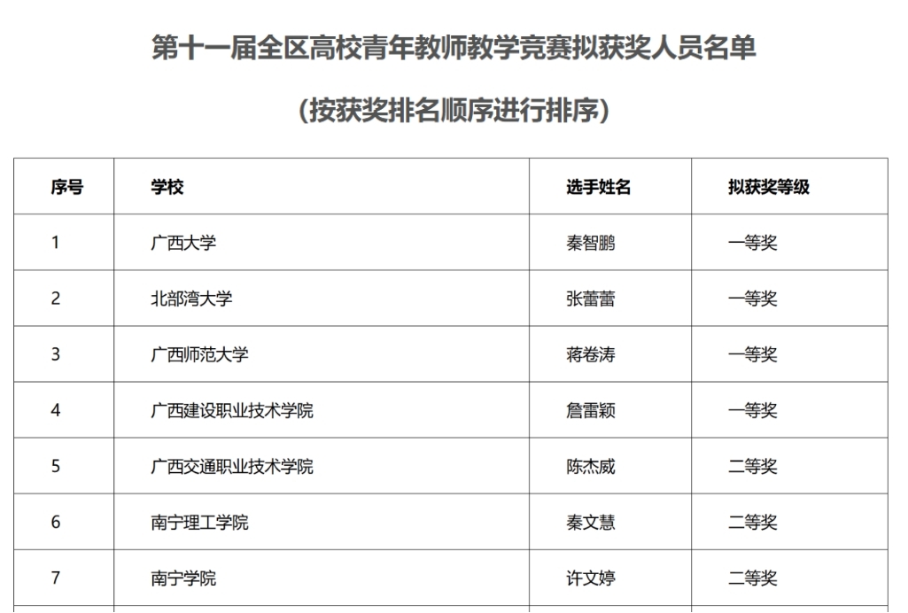 近日,广西壮族自治区教育厅公布了全区第十一届高校青年教师教学竞赛(简称“青教赛”)的获奖名单。我院教师许文婷凭借扎实的专业功底、精湛的教学技艺和出色的现场发挥,在激烈的竞争中脱颖而出,荣获工科组二等奖。这一荣誉不仅是个人的闪光,更是学院长期以来高度重视教学、聚力培养青年教师的生动缩影。