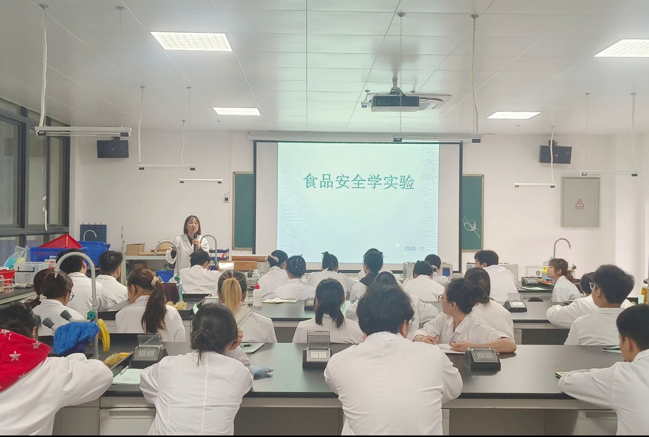 2025年12月31日上午南宁学院第五批“课程思政”示范课程《食品安全学实验》教学公开课于南硅谷C-301举行。本次公开课面向食品质量与安全专业学生,共有五位教师到场观摩交流。
