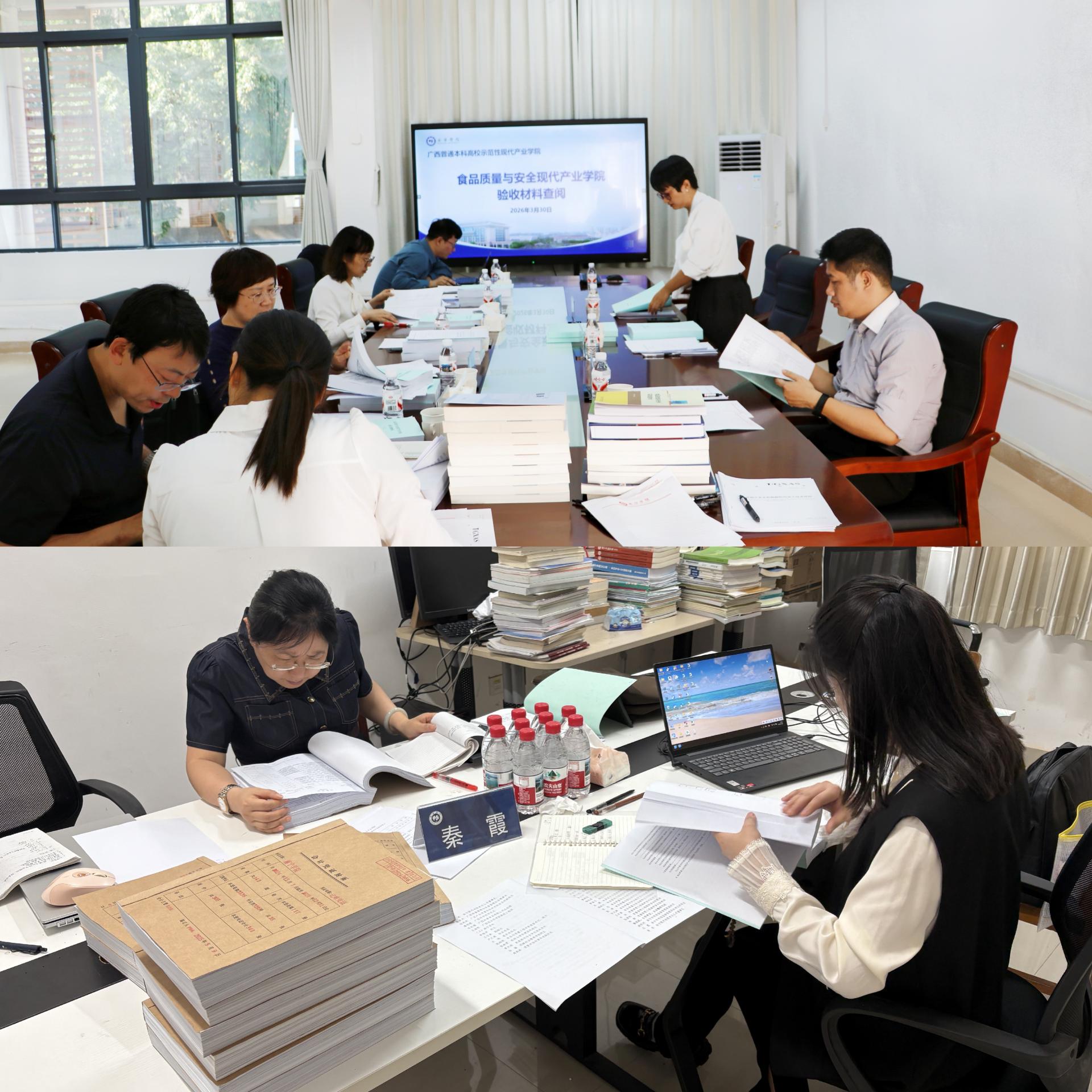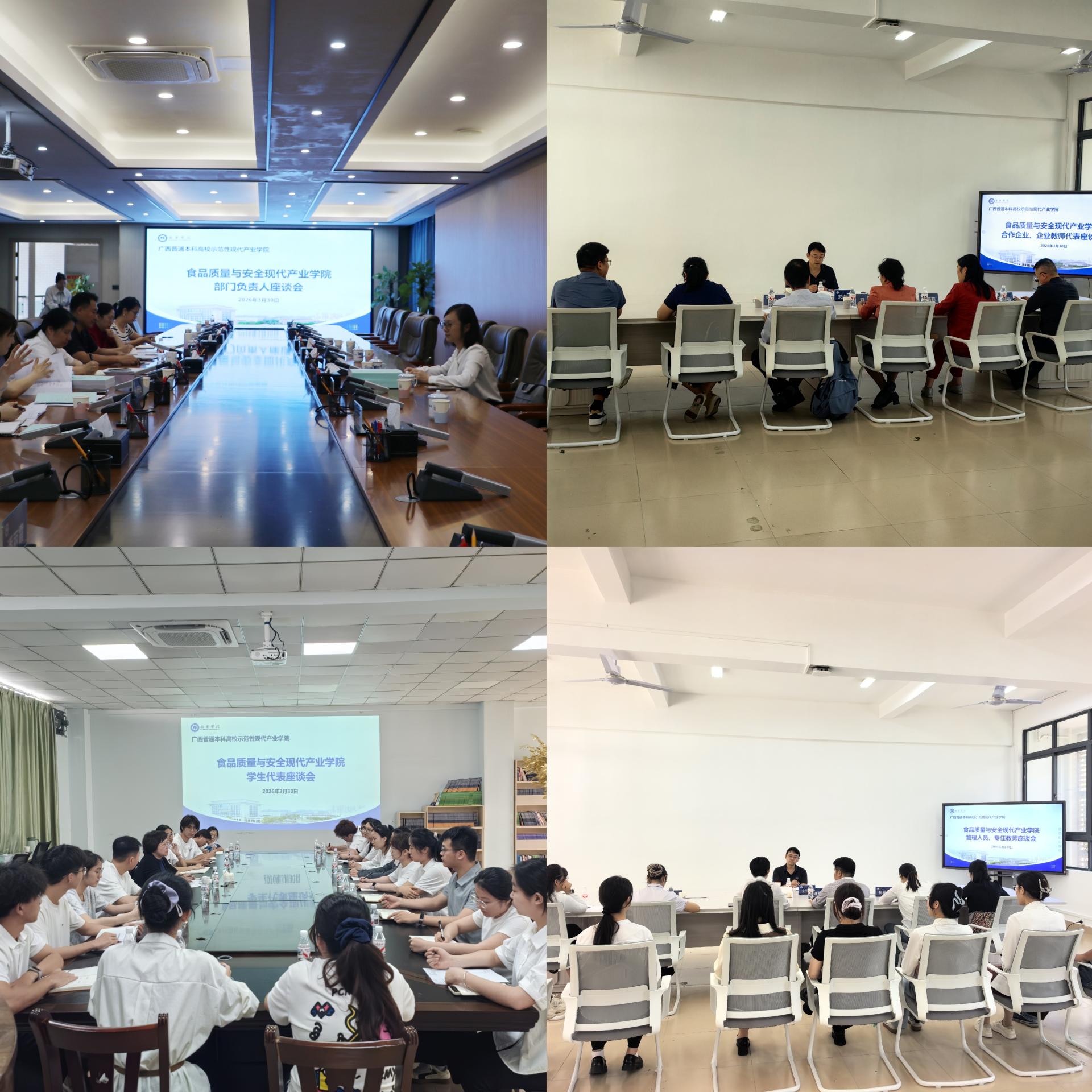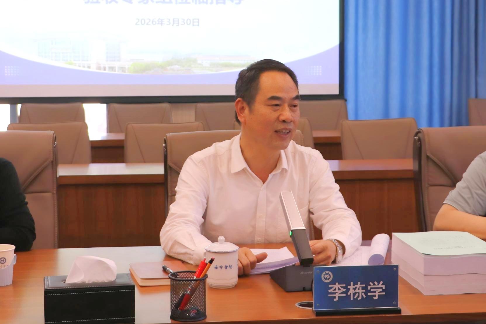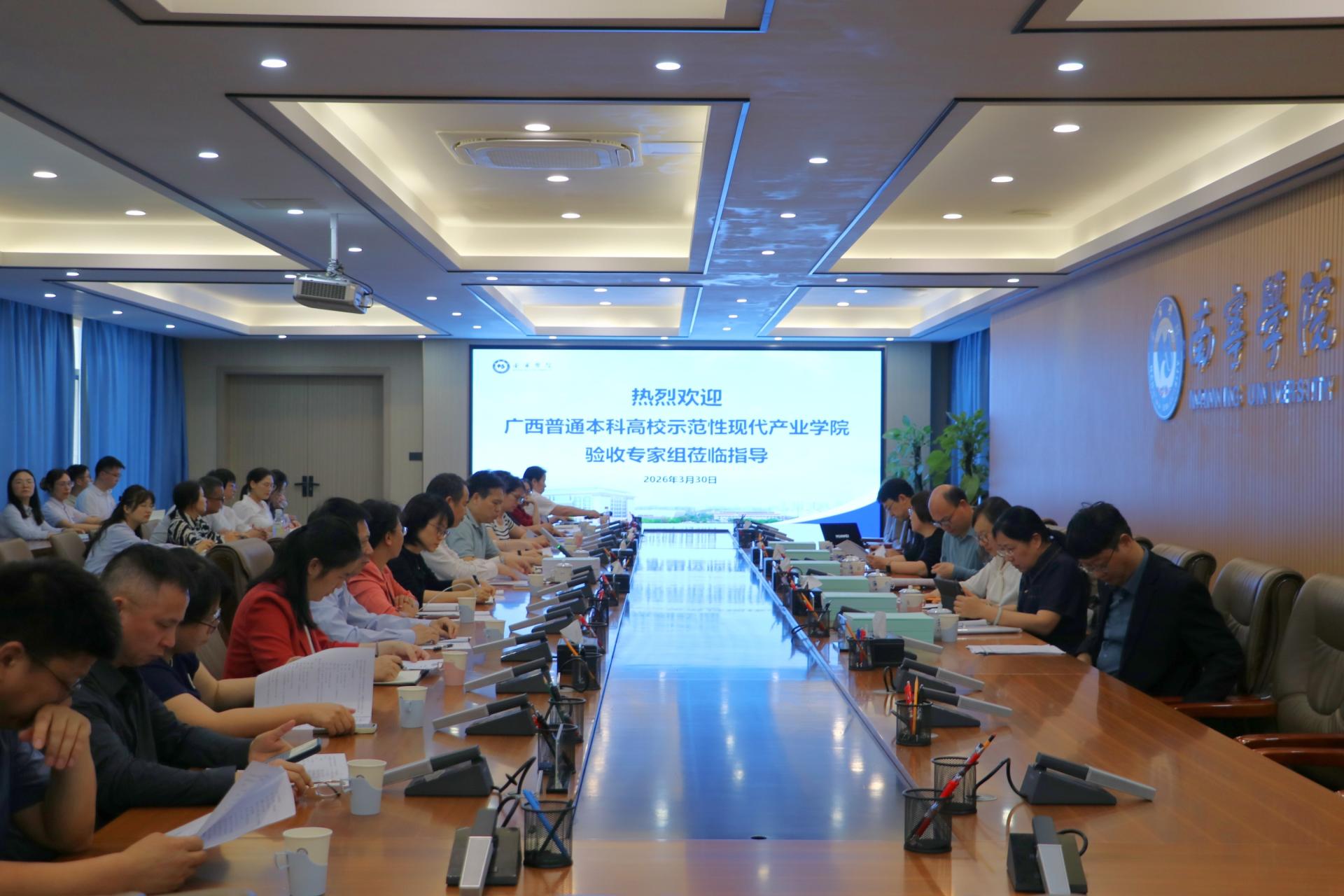 3 月 30 日下午,自治区示范性现代产业学院结题验收专家组组长、河池学院副校长贺卫国一行6人莅临南宁学院,对食品质量与安全现代产业学院(以下简称“现代产业学院”)开展结题现场验收评估工作。学校校长李栋学出席验收工作汇报会并致辞,副校长王宁章主持会议,教务处、财务处、发展规划与合作交流处、科研与学科建设处、质量评估与督导处、创新创业教育学院等相关部门负责人、合作单位代表及现代产业学院管理人员、教师代表参加验收相关工作。